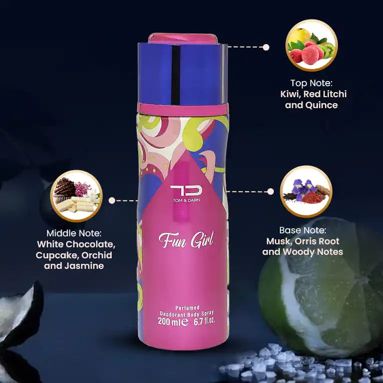 This delightful deodorant captures the essence of carefree fun and feminine charm, enveloping you in a fresh and sweet scent that radiates energy and positivity. With each spritz, indulge in the playful notes of kiwi, red litchi, and quince, complemented by the sweetness of white chocolate and the floral elegance of orchid and jasmine. Enhanced with musk, orris root, and woodsy notes, this long-lasting fragrance is your perfect companion for confidence and shine all day long.