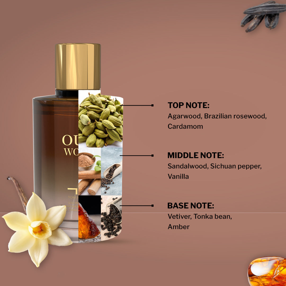 Top Notes: Agarwood, Brazilian rose wood, cardamom