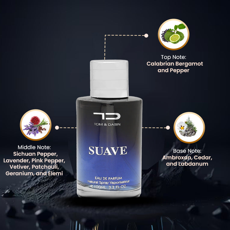 Elevate your essence with Suave, the epitome of sophistication from TD Collection. At first spray, be enveloped in the invigorating blend of Calabrian bergamot and pepper, setting the stage for an enchanting journey. As the fragrance unfolds, immerse yourself in the harmonious fusion of Sichuan pepper, lavender, pink pepper, vetiver, patchouli, geranium, and elemi, each note adding depth and complexity to your presence. Finally, succumb to the allure of ambroxan, cedar, and labdanum, leaving a lasting impression of irresistible charm and refinement. Suave is your companion for moments of romance and charm, exuding timeless elegance with every spritz.